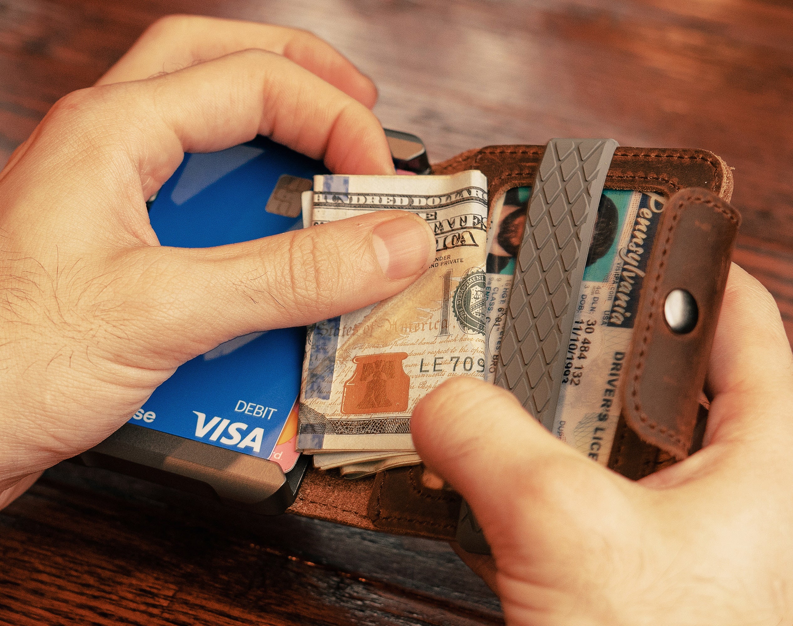 CARRY YOUR EVERYTHING. THE DAPPER WALLET CAN EASILY HOLD UP TO 8 CARDS.